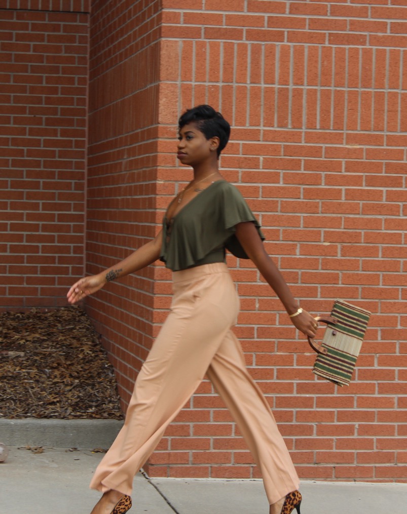 But I thought the green would look really nice with these wide legged trousers I got from Forever 21. And since I love adding a bit of umph to my outfits, I paired it with these amazing cheetah pumps (can’t remember where I bought them) and a printed clutch I got from the thrift store.