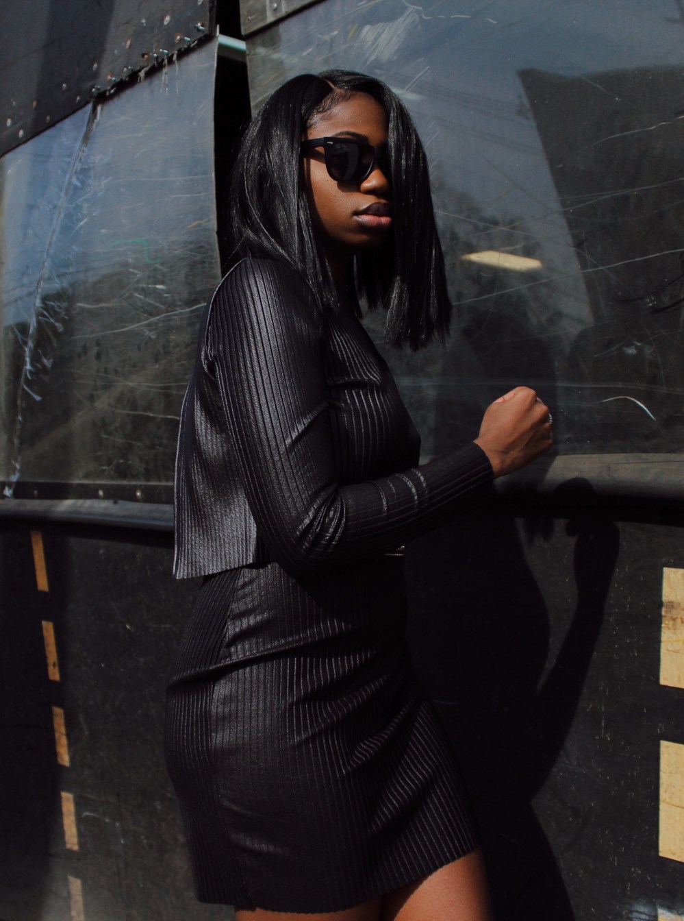 Dress: Missguided ‘Black Coated Pleated Overlay Mini Dress’