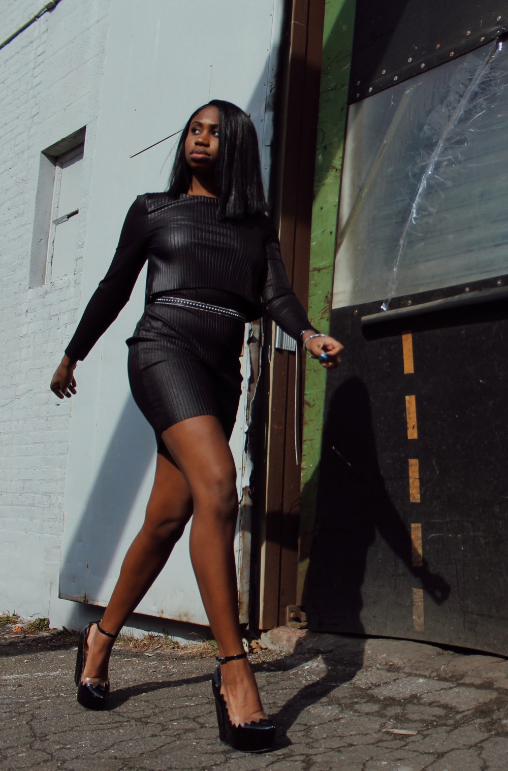 I wore a studded belt with the dress to give it more of a ‘rocker chic’ edge and I paired it with some patent leather wedges.