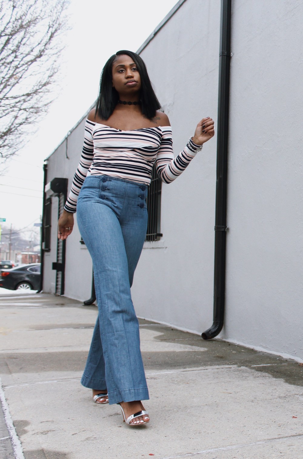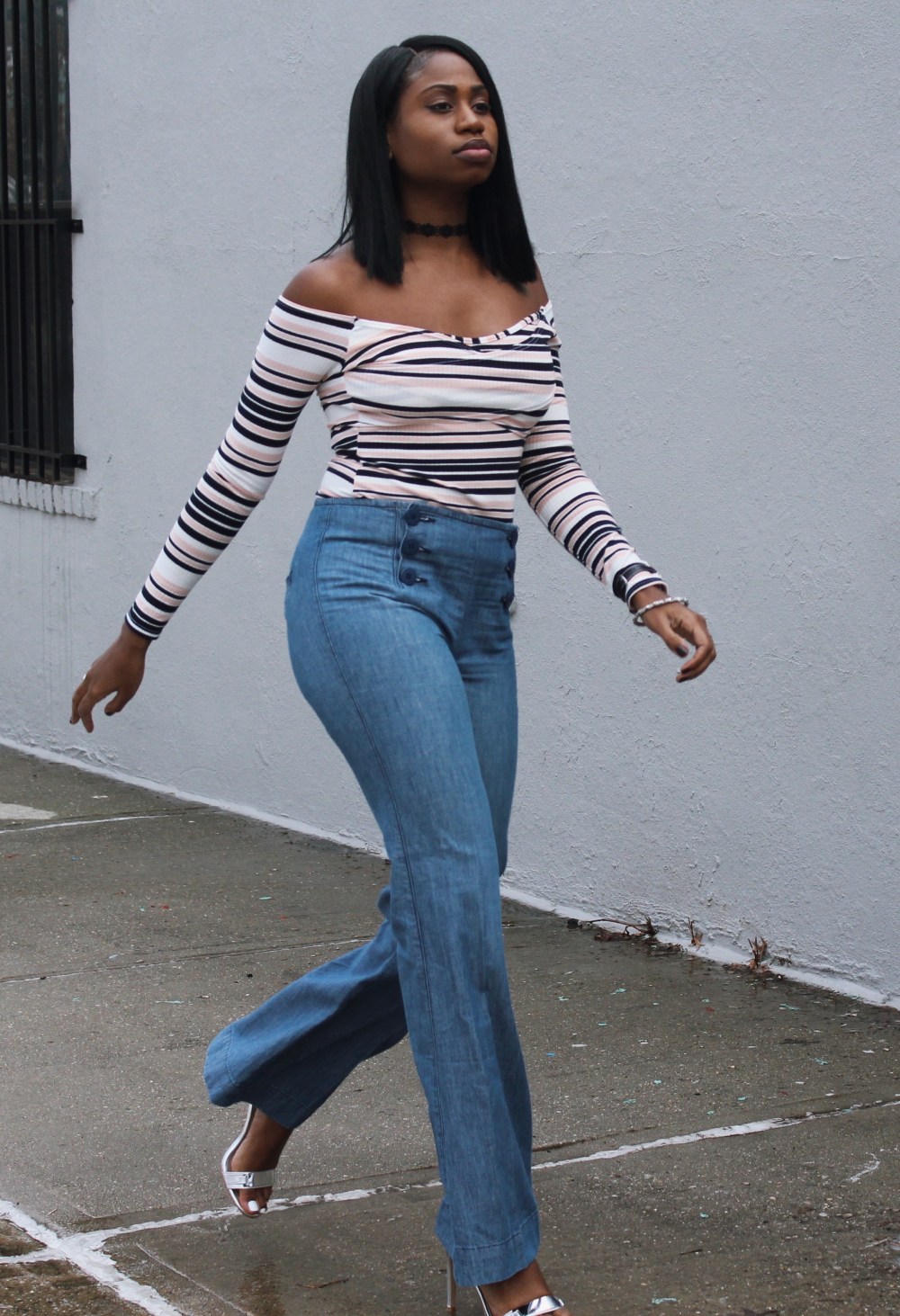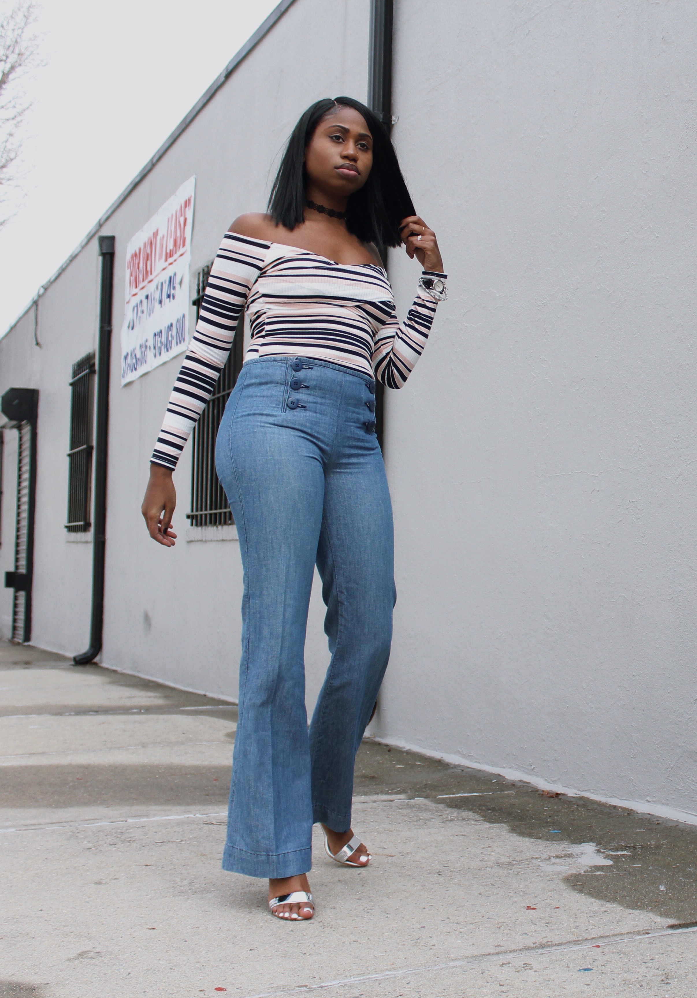 I paired these jeans with a bardot top that I bought on sale for $10.80 and a pair of silver sandals for 20 bucks.