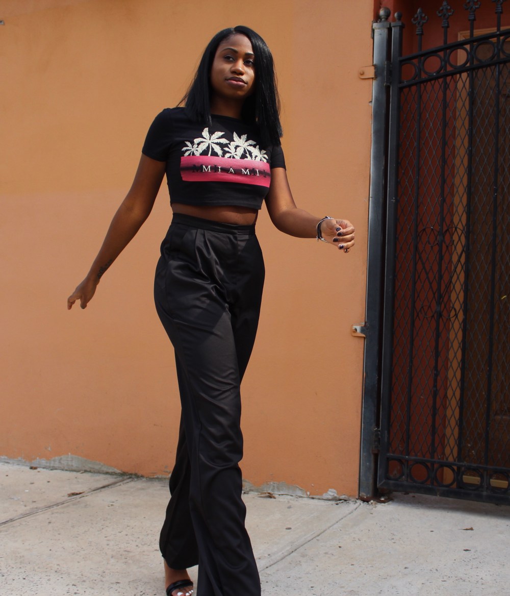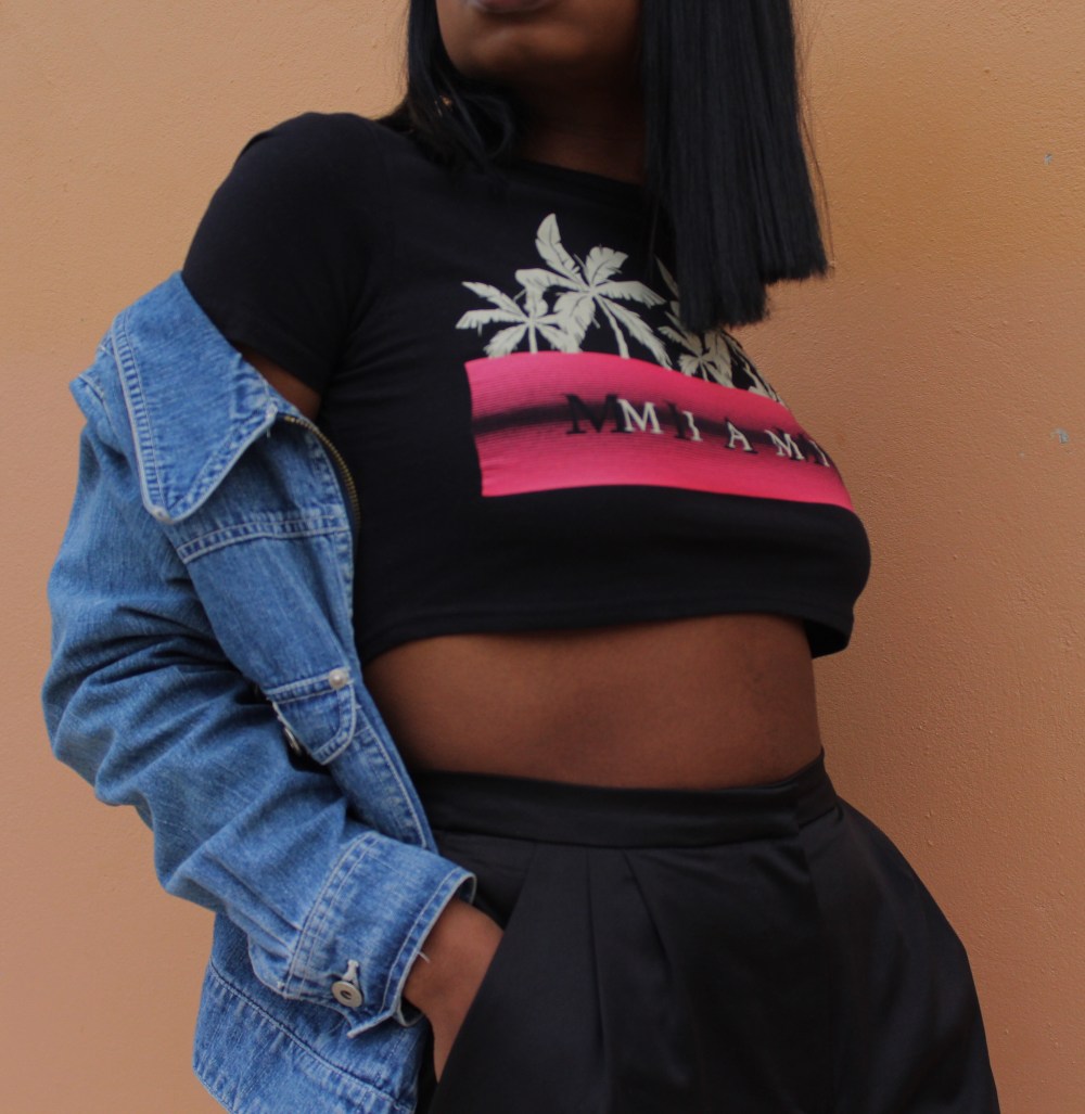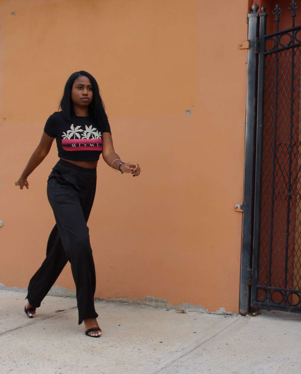 Even though I took these pictures in New Jersey, the colors of the wall reminded me of South Beach. Not to mention, my crop top says “Miami” too.