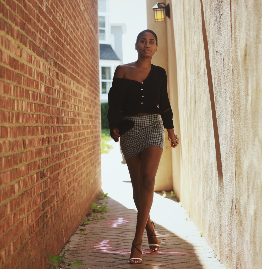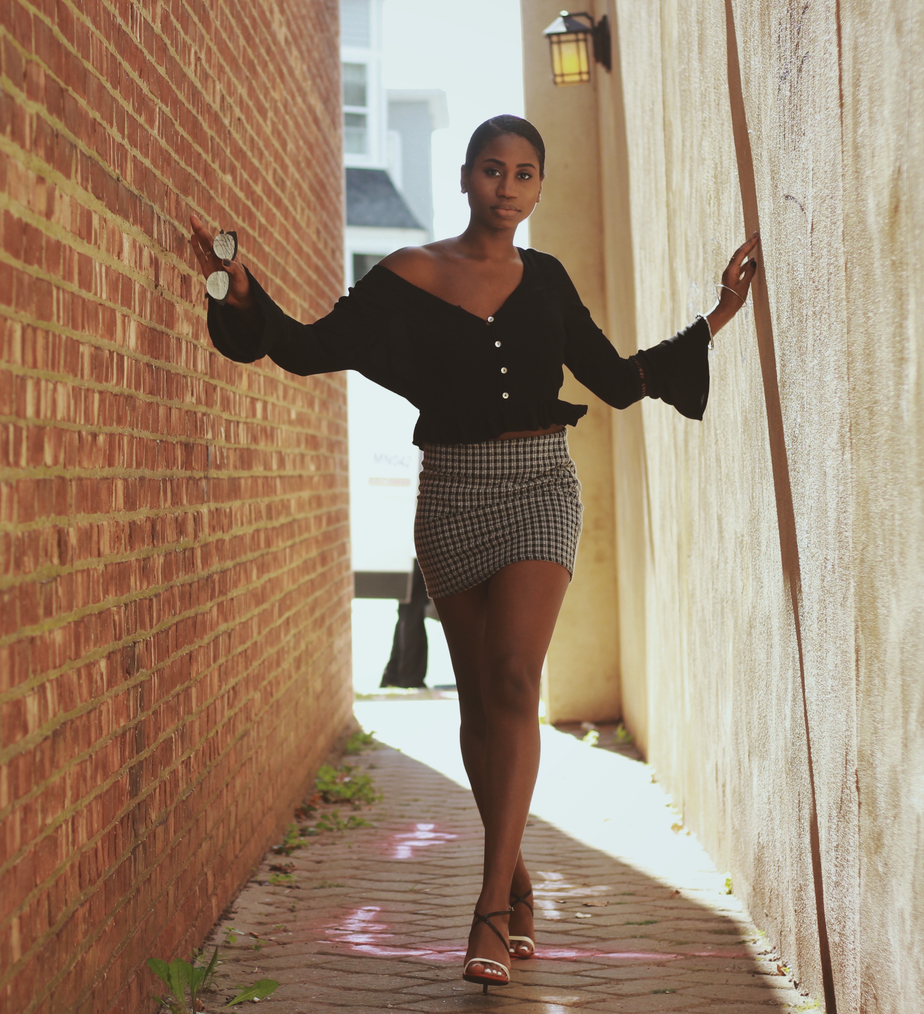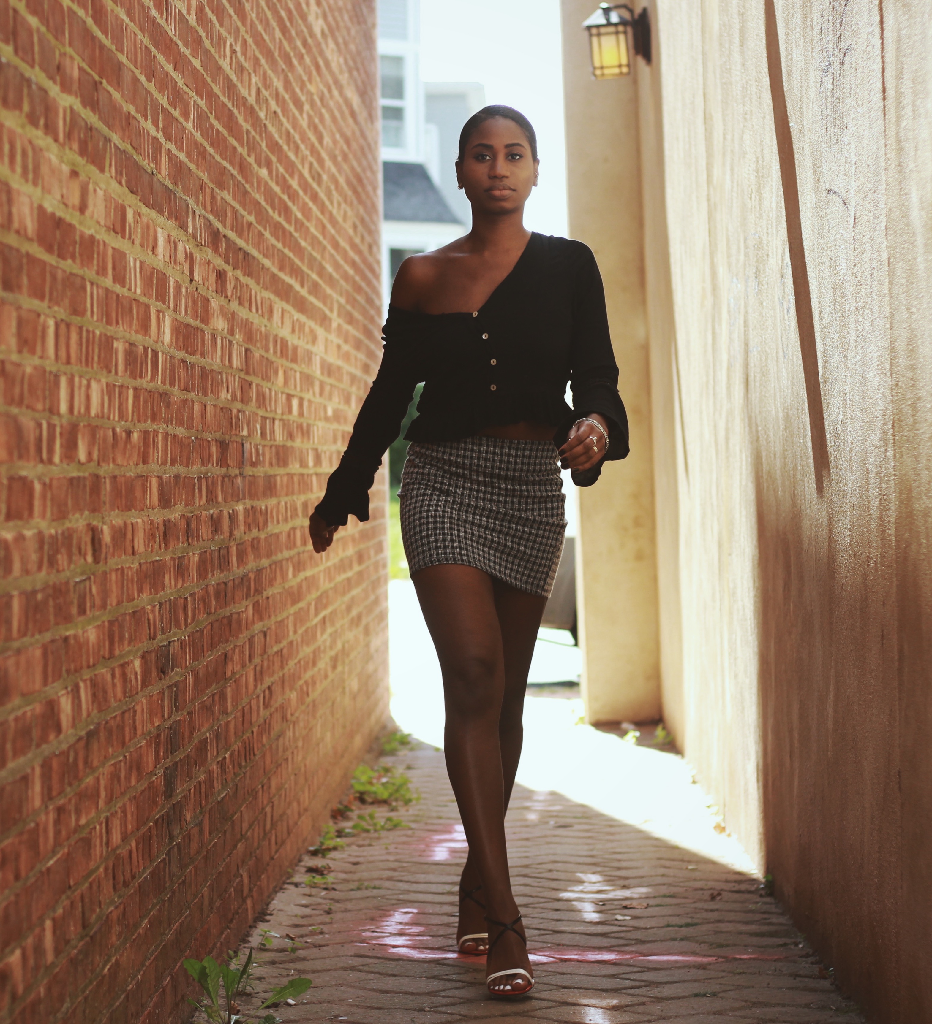 I got this checkered mini skirt (Zara) and the top from Plato’s Closet. So, my outfit (excluding the shoes) was about $10.