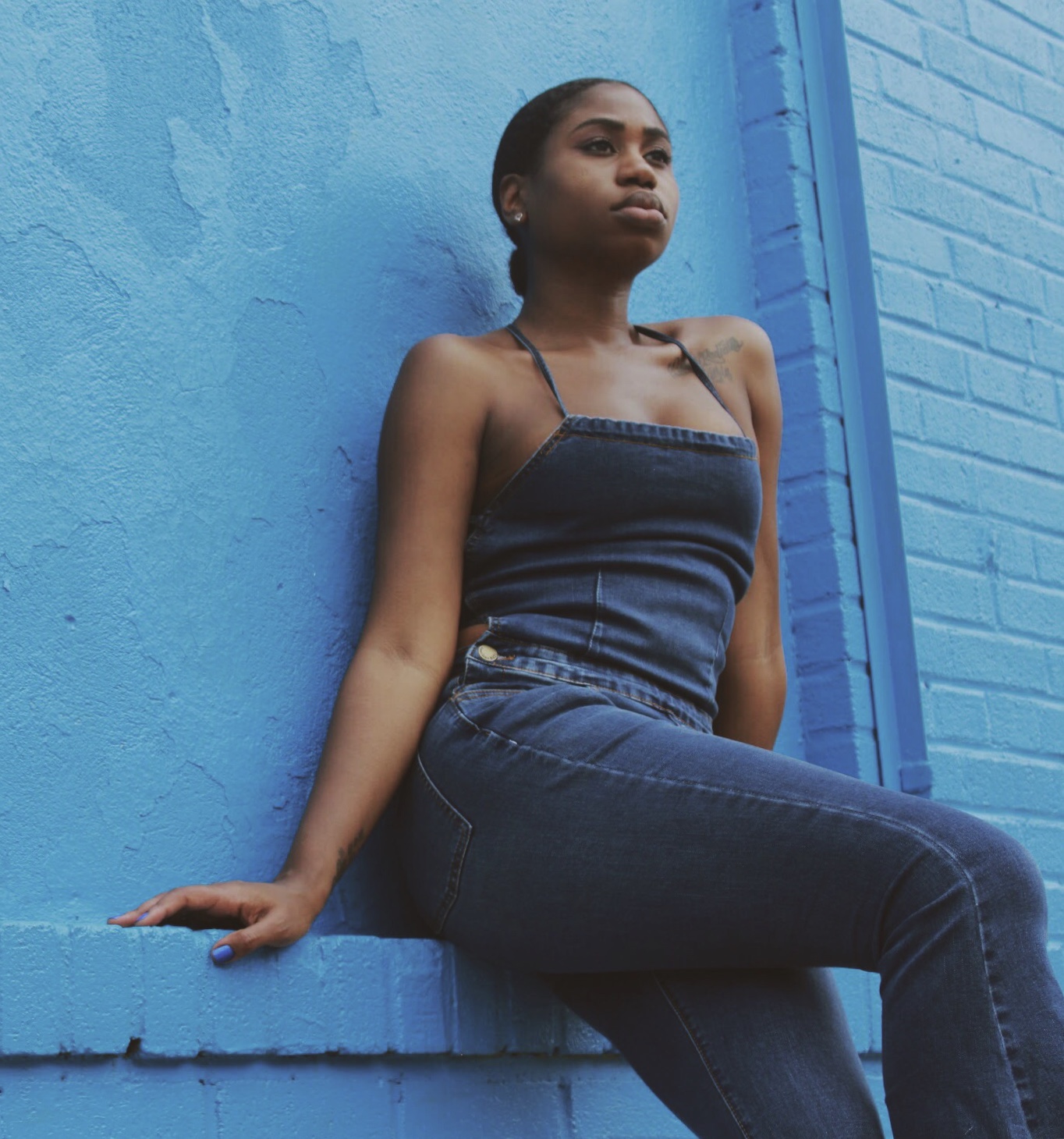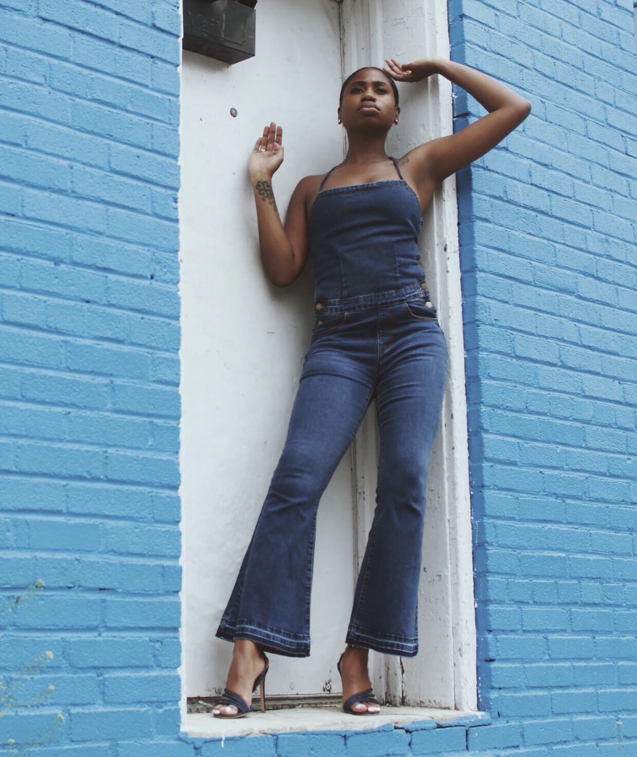 Not only were the shoes and the jumpsuit both denim but they also had the strappy detailing, almost like they were made to be worn together.